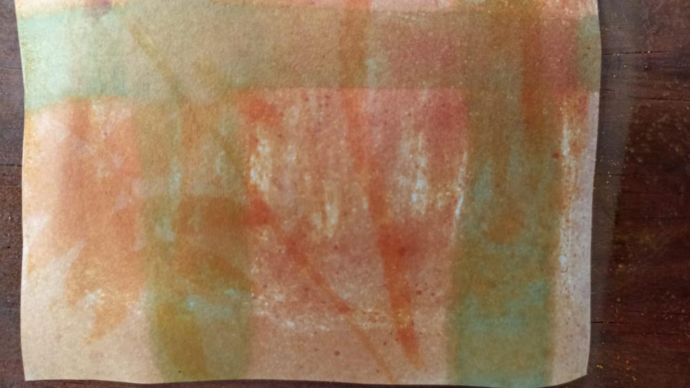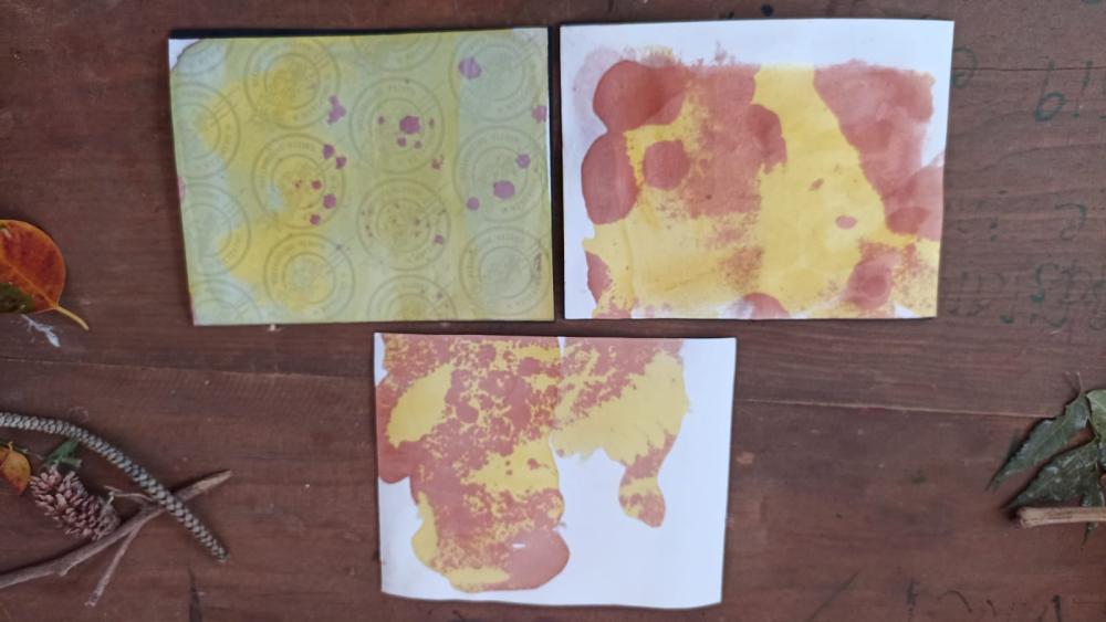 Para el manejo de los pigmentos suele influir el estado del tiempo, el clima y para el caso de la antotipia, principalmente la luz solar (con rayos UV); el día del taller estaba nublado por lo que la reacción no fue tan fuerte, sin embargo se obtuvieron fotos con base lo esperado, y como es característico de la técnica, únicas (una foto nunca sale igual).
